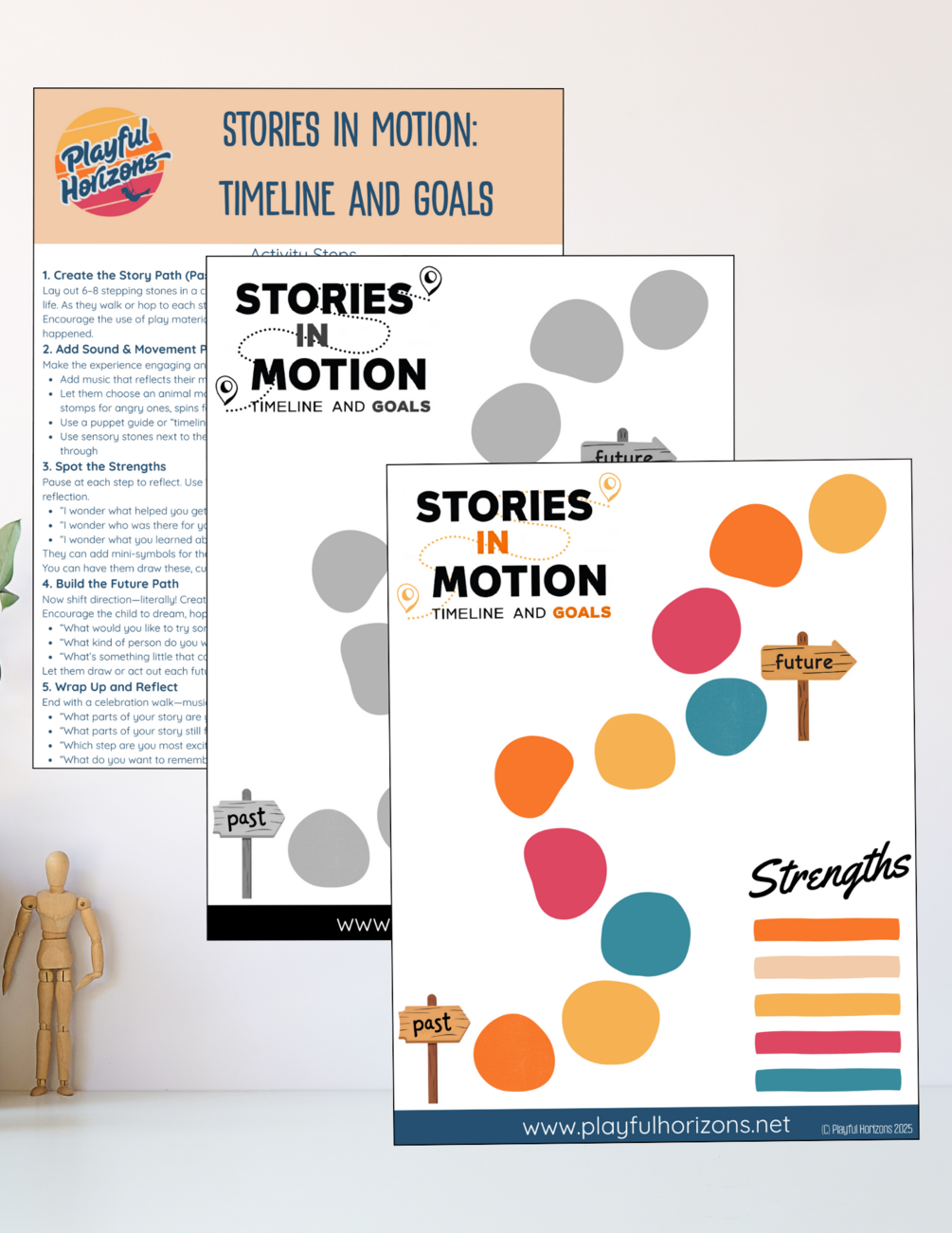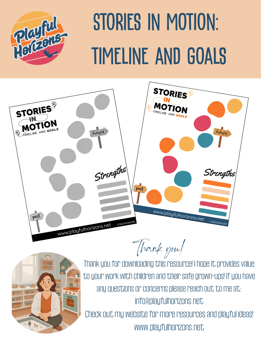 - 2 Versions of the printable PDF: Stories in Motion: Timeline and Goals (color and grayscale)